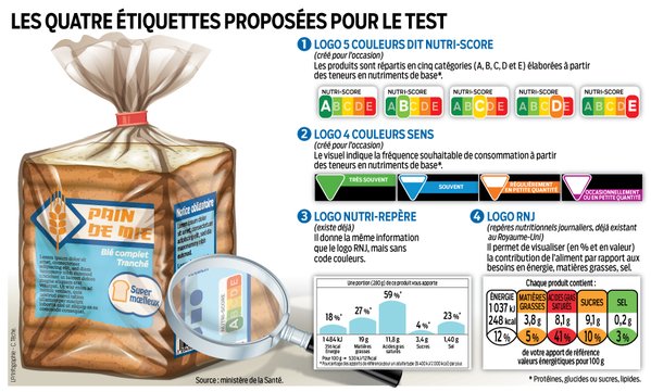 Les 4 logo nutritionnels vont être proposés aux consommateurs:
